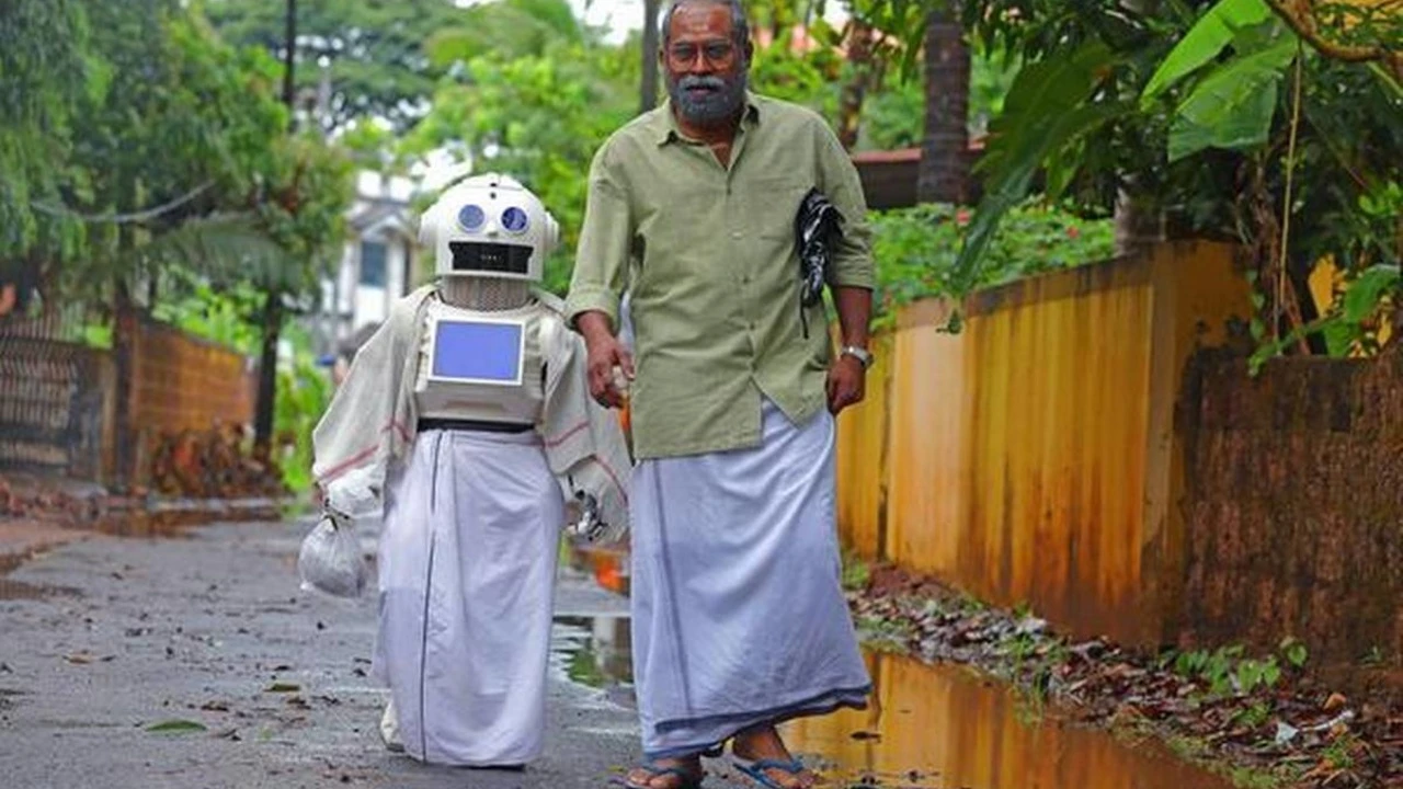 A robot inside a rural home. Technology meets aging loneliness. Migration and generational change in modern Kerala.